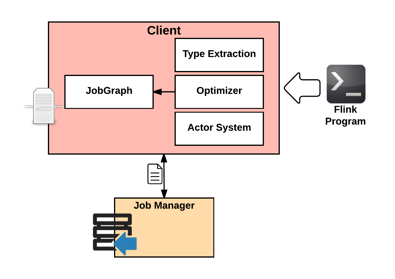 The following figure gives you anatomy of the Flink client component and also gives the link between another Flink component: