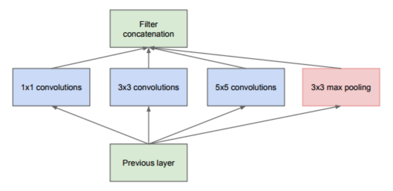 In this Inception block image, the convolution of different sizes is applied to the input, and the outputs of all these layers are concatenated. This is the simplest version of an Inception module. There is another variant of an ...