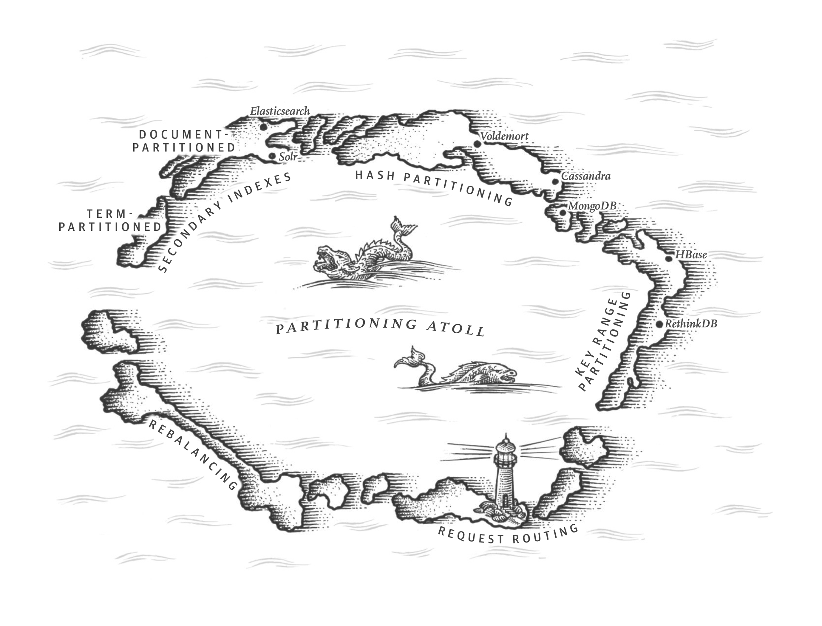What we call a partition here is called a shard in MongoDB, Elasticsearch, and SolrCloud; it’s known as a region in HBase, a tablet in Bigtable, a vnode in Cassandra and Riak, and a vBucket in Couchbase. However, partitioning is the most established term, so we’ll stick with that.