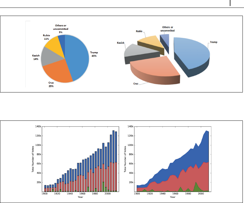 共和党大会における大統領候補別代議員数の円グラフ。どちらの方がよいか? その理由