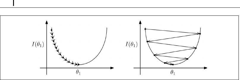 なる。しかし、ステップサイズが大きすぎると、最小値を通り過ぎてしまう