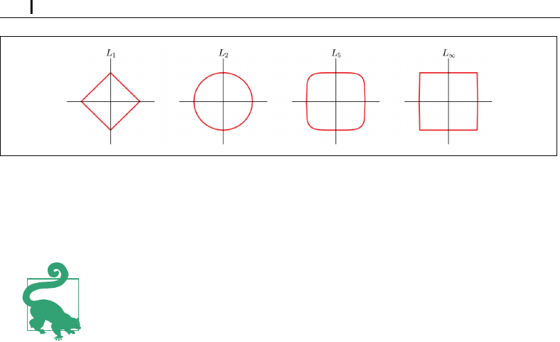 そのため、距離を比較する順序は、総和の k 乗根を計算しなくても変わらない。k 乗根の計算を避けると