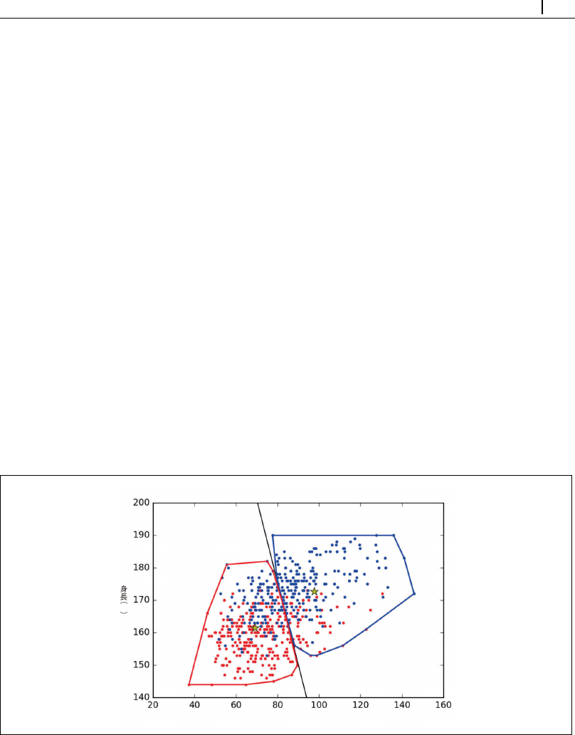 10 -11 の 2 つの身長—体重クラスタはともに、どちらかの性に集中している。
