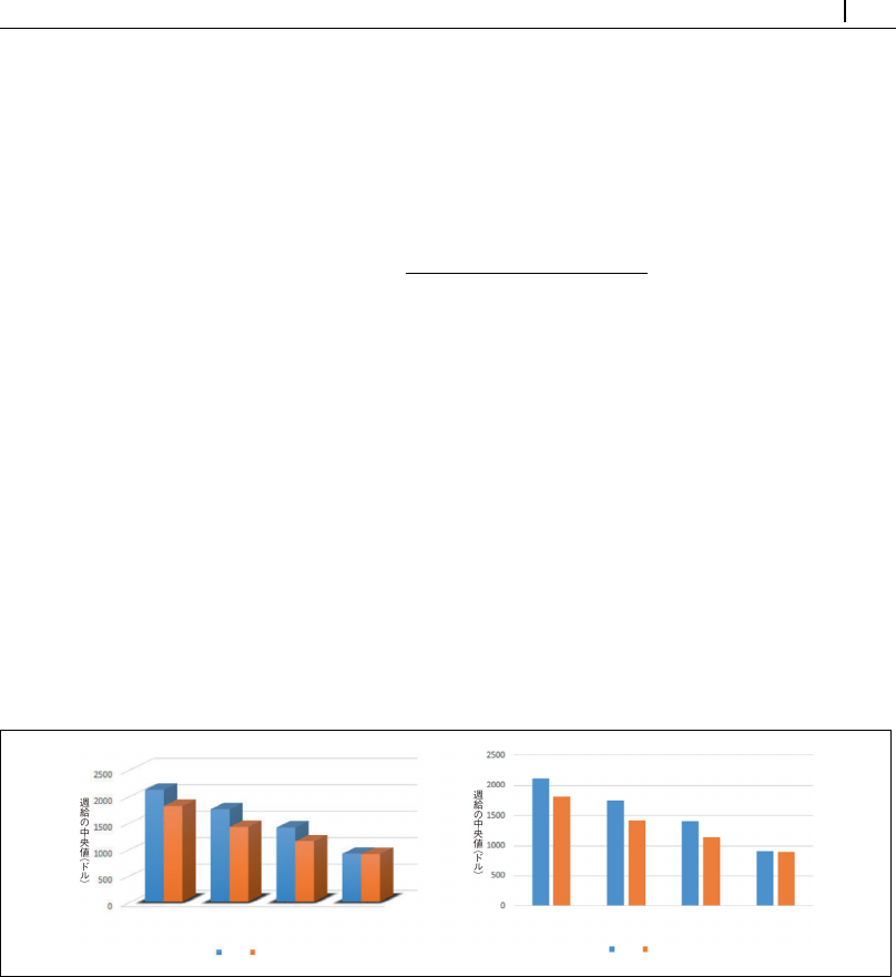 、性別ごとに平均給与を示したグラフ(アメリカ労働統計局、2015 年)で、この概念を明らかに