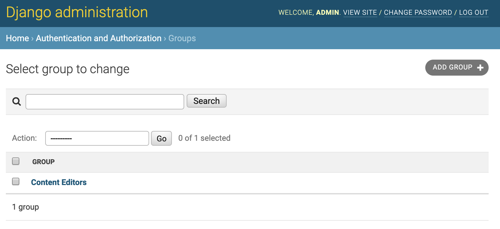 - The Role model, which is a proxy for the Group model from the django.contrib.auth app. The Role model was created to rename the verbose name of Group to Role.