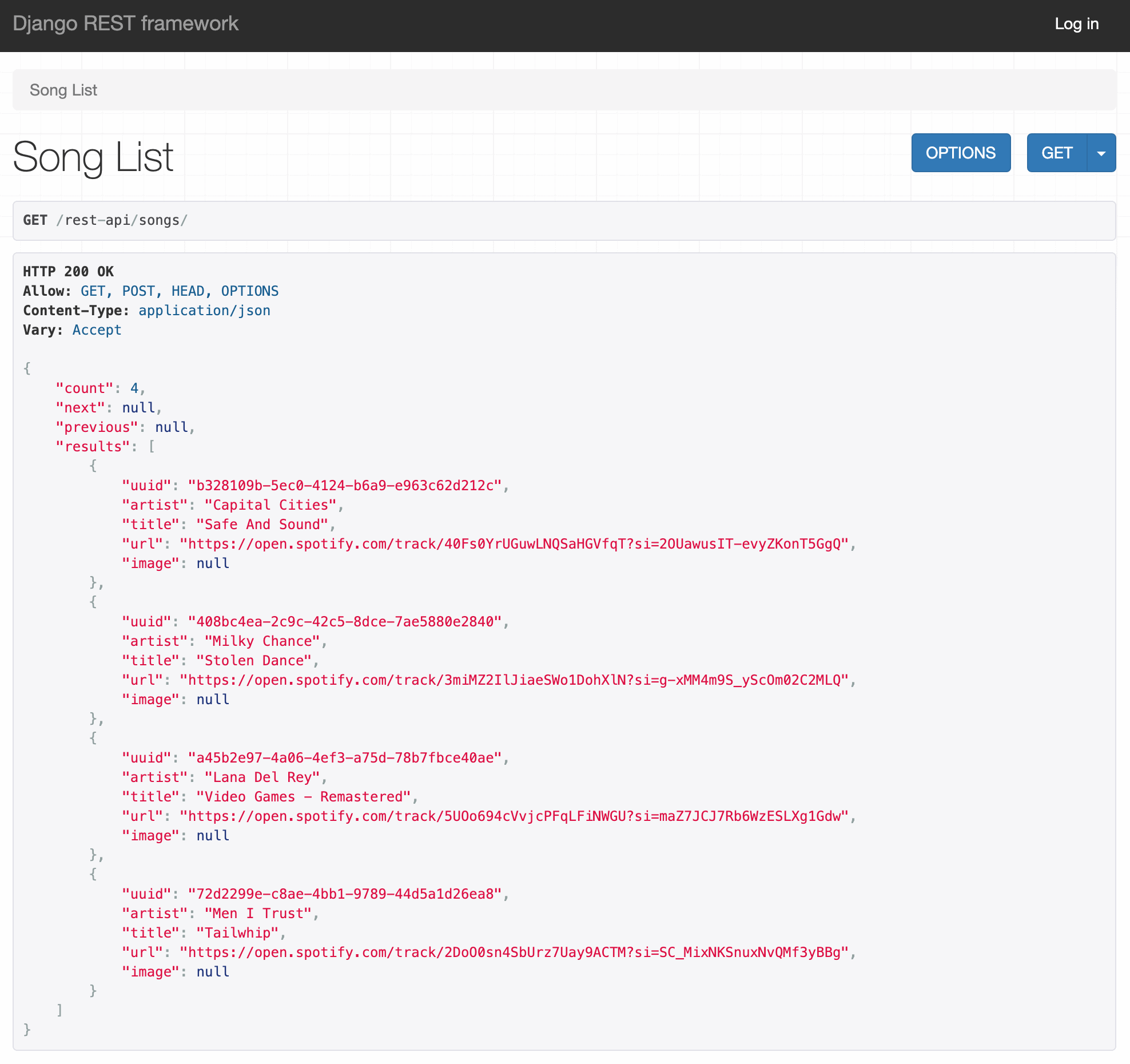 | /rest-api/songs/ | GET | List songs paginated ... |