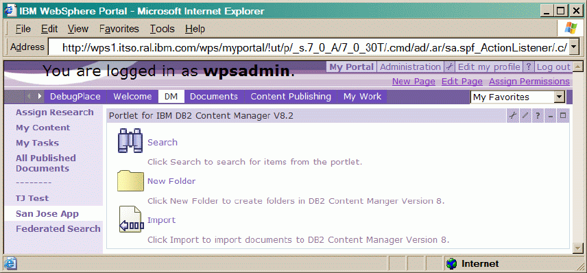 8. After the portlet application has been successfully installed, access