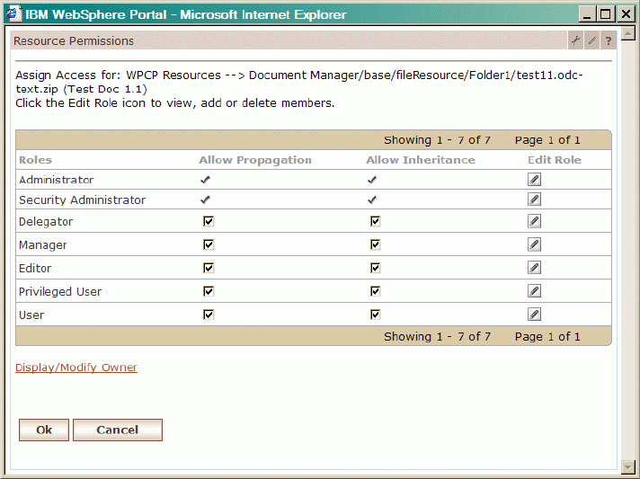 Figure E-12 Portal Document Manager – Setting access permissions on a document