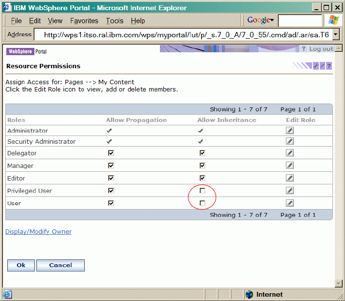 a. Click the key icon again (Set Page Permission) next to the My Content