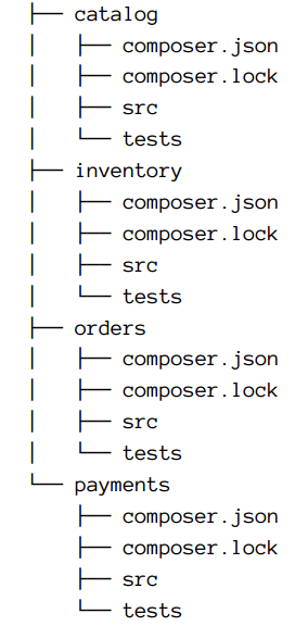 If some of the different Bounded Contexts are Order Management, Payment Management, Catalog Management, and Inventory Management, we recommend having an application for each one: