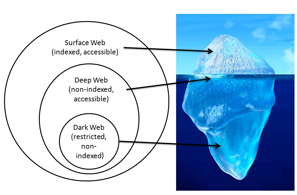 To really understand the dark web, we need to differentiate it from the normal web. By normal web, we imply the surface web that we browse using a web page address, or search using natural language typed into search engines, such as Google or Bing. There is yet another type of web called the deep web. Figure 10.4 depicts the three strata of the web using an iceberg analogy: