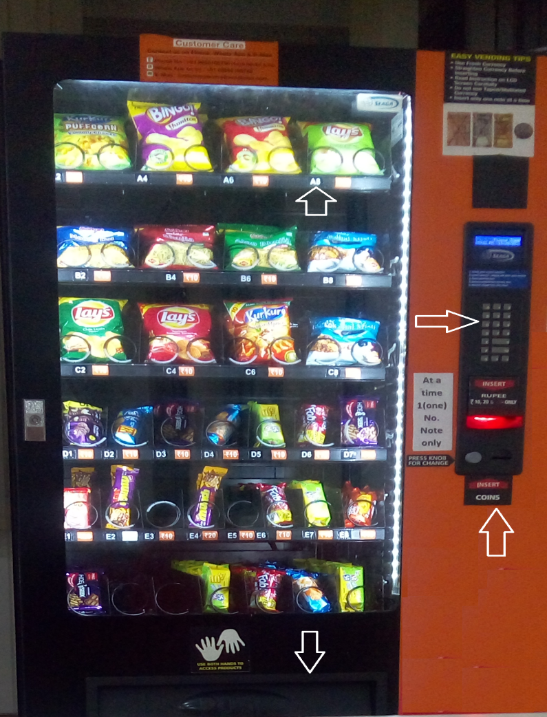 Long before blockchains and the internet, in the analog era, we had mechanical devices that basically executed smart contracts. These were vending machines, as depicted in Figure 5.1. Once you pay a certain amount in a certain currency, you get to choose the product code. Once the code is confirmed, then the product comes out of the machine. If you do not pay, the product does not come out. If you delay more than the waiting-time threshold after paying, or there is any mechanical malfunction and your session expires, the product does not come out: