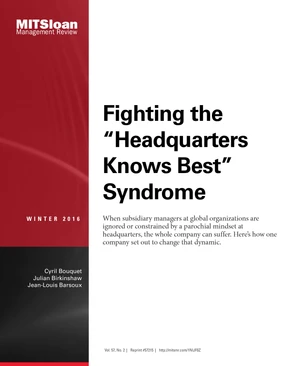 Narrow-mindedness holds back many organizations in their efforts to turn global presence into a real source of competitive advantage. In this article, the authors explore the manifestations and costs associated with what they call the “headquarters knows best” syndrome, as well as ways companies can address the problem. Many of the things companies have done are fairly predictable, such as decentralizing global responsibilities, changing the reporting relationships, internationalizing senior management, and creating cross-national teams.