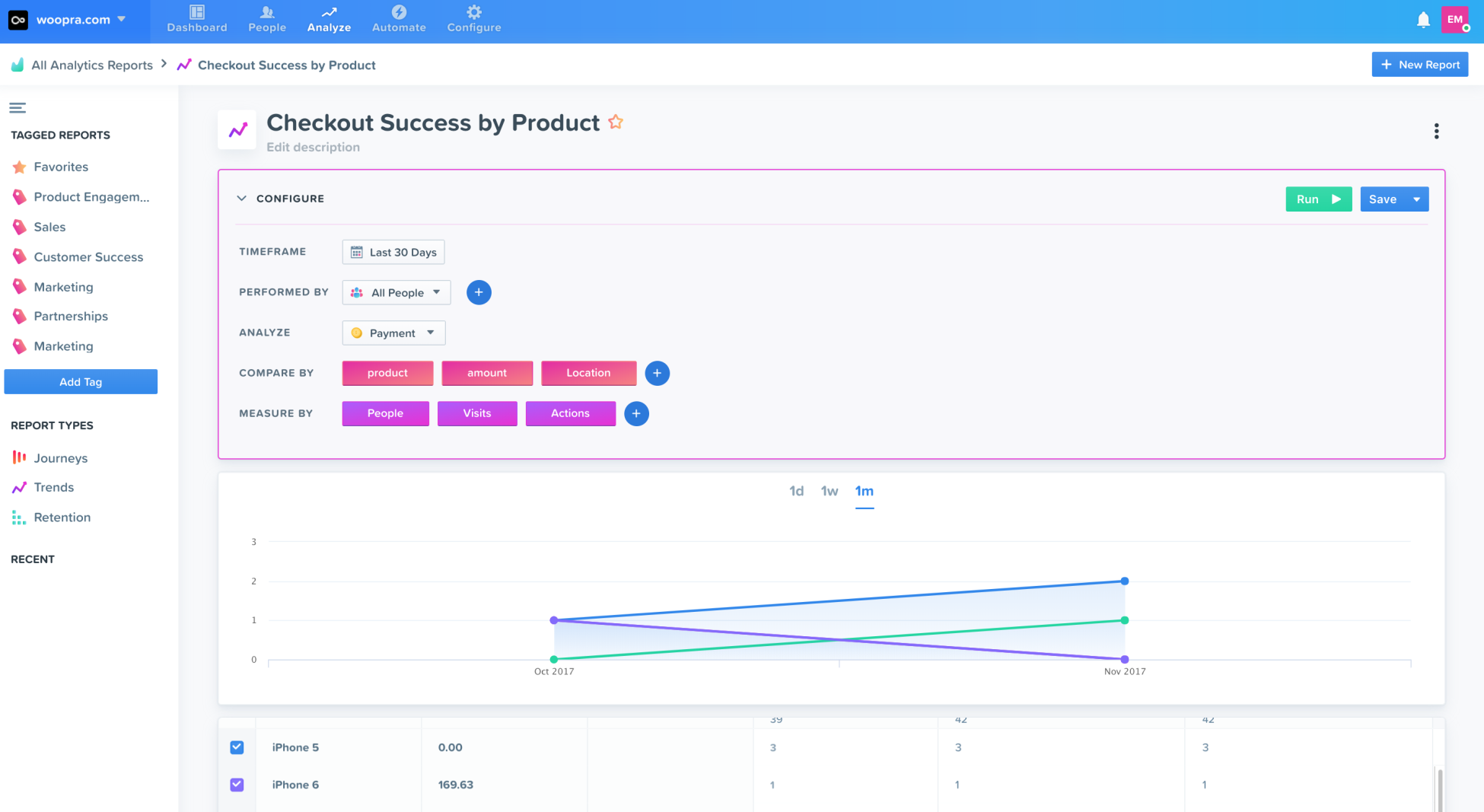 You can also use Woopra, which lets you view the user activity in real time on the website. It shows a comprehensive profile of each user and tracks all their activity, even without them signing up. It also allows the customizable analysis of a set of data, such as segmentation, funnels, retention, and so on. With Woopra, you can even automate data-driven actions, such as displaying custom content or making real-time notifications or trends, as you can see as follows: