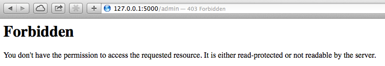 A user must be logged in as the admin to access this page and other admin-related pages. If a user is not logged in as the admin, then the application will show an error, as shown in the following screenshot: