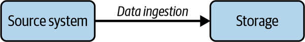 L'ingestione dei dati è il processo di spostamento dei dati da un luogo all'altro. L'ingestione dei dati implica il movimento dei dati dai sistemi di origine all'archiviazione nel ciclo di vita dell'ingegneria dei dati, con l'ingestione come fase intermedia(Figura 7-2).