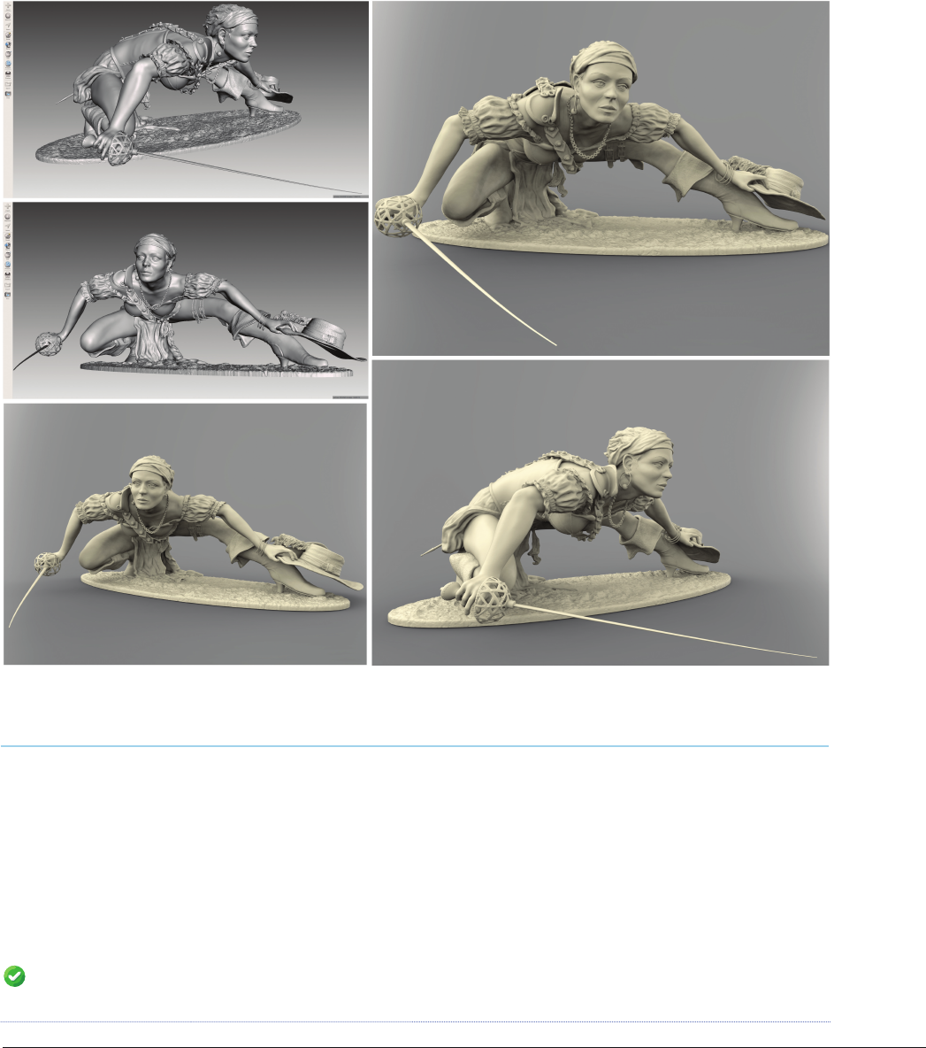 FIGURE 111: The two gray figures (top left) are created in Meshmixer; the other three views have had color and shading effects added