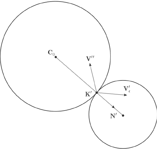 FIGURE 2.3: The moving circle is in contact with the stationary circle, but