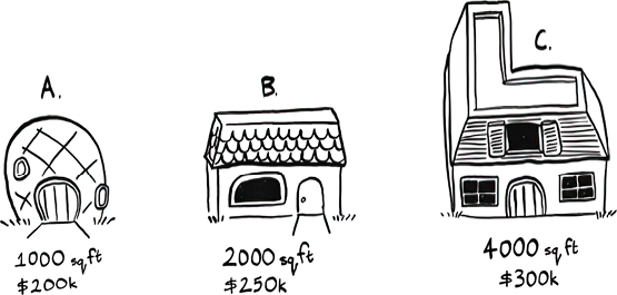 Suppose you need to sell your house. It is 3,000 ft². You look at the homes recently sold in your neighborhood.