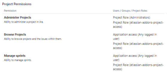 Next, we want to take a look at permissions, so we'll bring up the Permissions options for our default software scheme, which is what we're using for our Scrum project, as shown in the following screenshot: