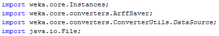 We will start with DataSource. DataSource is a class that helps us to open a dataset file that is available in Weka. By default, Weka works with ARFF files; see the following code: