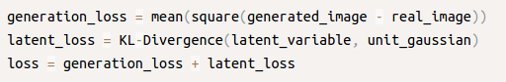 The following screenshot shows the loss for the VAE and that it is a combination of the generative loss and a loss on the latent space: