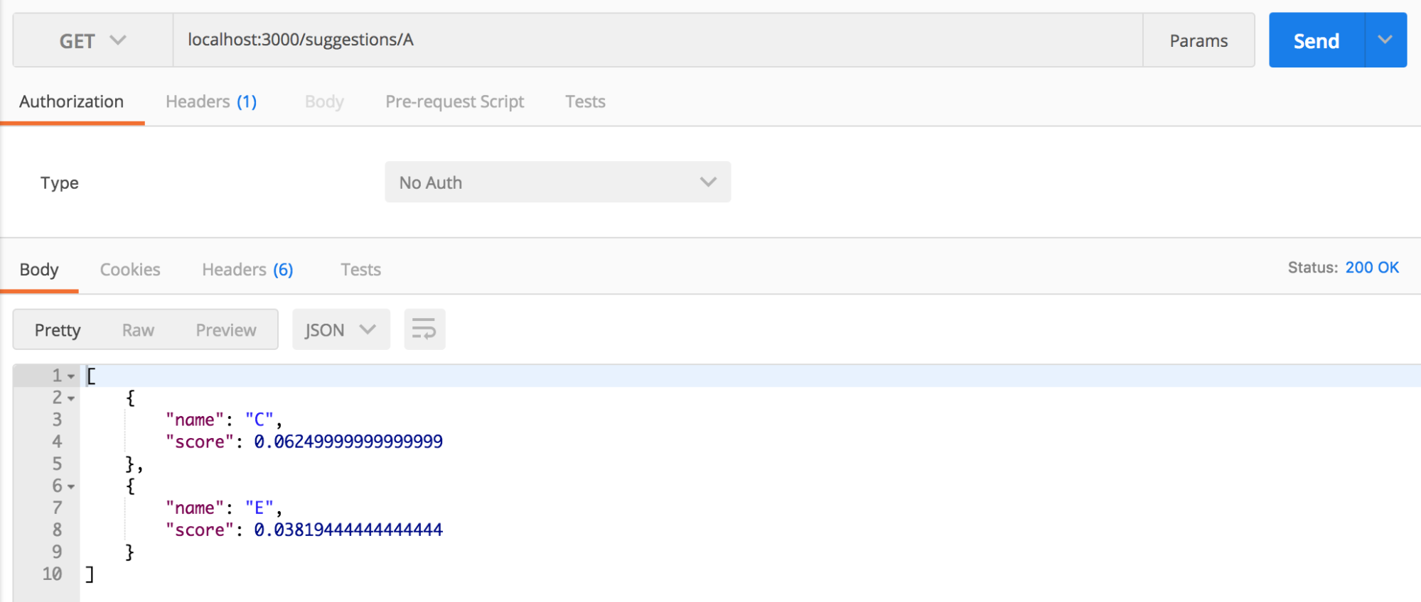 Once the message appears, you can either open Postman or anything else of your choice to make the API calls for suggestions: