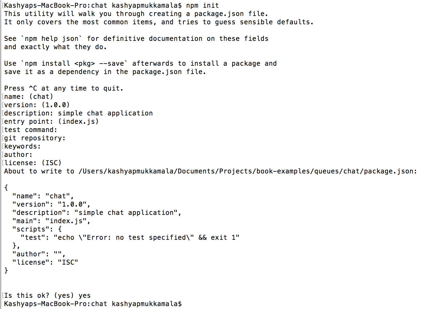 On running this command, Node will prompt you with a series of questions, which you can either fill or leave blank: