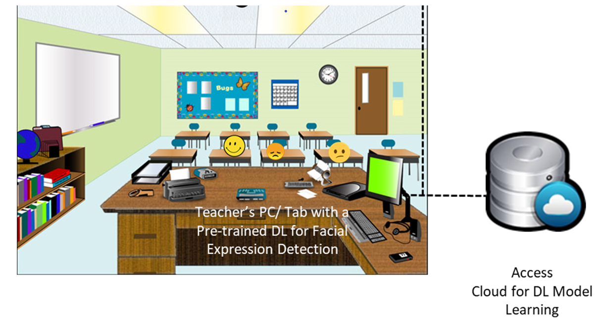 - Sensors and computing platform: For this use case, we need at least one CCTV camera that can cover the classroom and be connected to the computing platform wirelessly or via a concealed cable in the walls. The lecturer's computer in the classroom can work as the computing platform. The computer will continuously process the video signals and convert them into images for the image-based facial expression analysis.