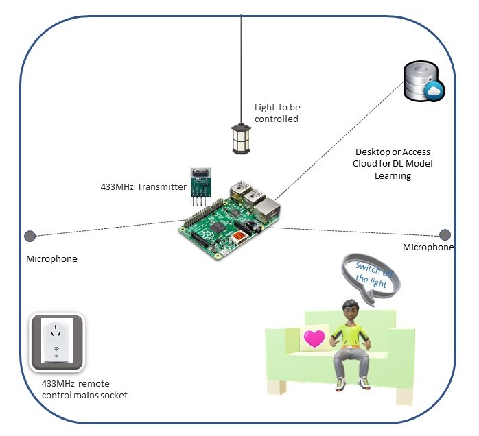 The following diagram presents the key components needed for the implementation of a voice-activated light (in a room):