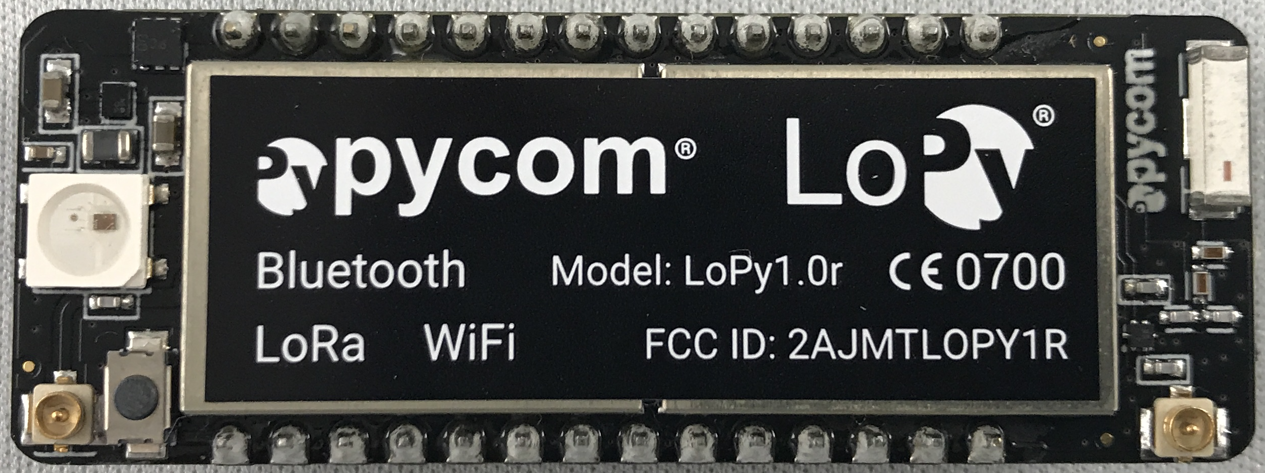 PyCom boards simplify IoT development by supplying various methods for connecting to the outside world. PyCom boards utilize the MicroPython microcontroller language based on Python 3. MicroPython runs on what is referred to as bare metal as it is given access to low-level access to inputs and outputs. The following photograph shows the PyCom LoPy board: