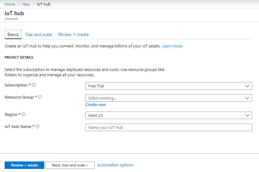 To begin, we will create an IoT Hub in Azure. The steps are as follows: