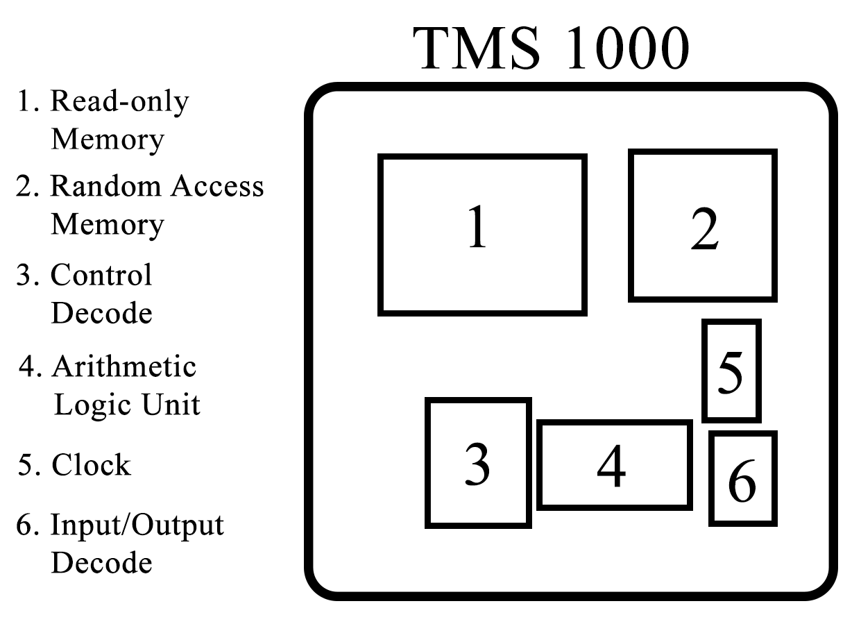 The first commercially available MCU was Texas Instrument's TMS 1000, a general-purpose 4-bit, single-chip system. It was first made available for sale in 1974. The original model had 1 KB of ROM, 64 x 4 bits of RAM, and 23 I/O pins. They could be clocked at speeds from 100 to 400 KHz, with each instruction executing in six clock cycles.