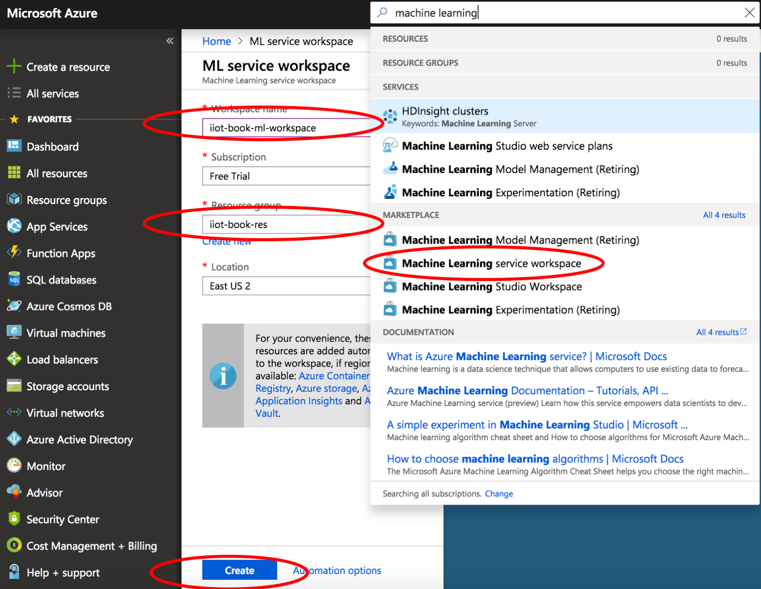 To start using the Azure ML service, we can either create a workspace programmatically or by using Azure portal.