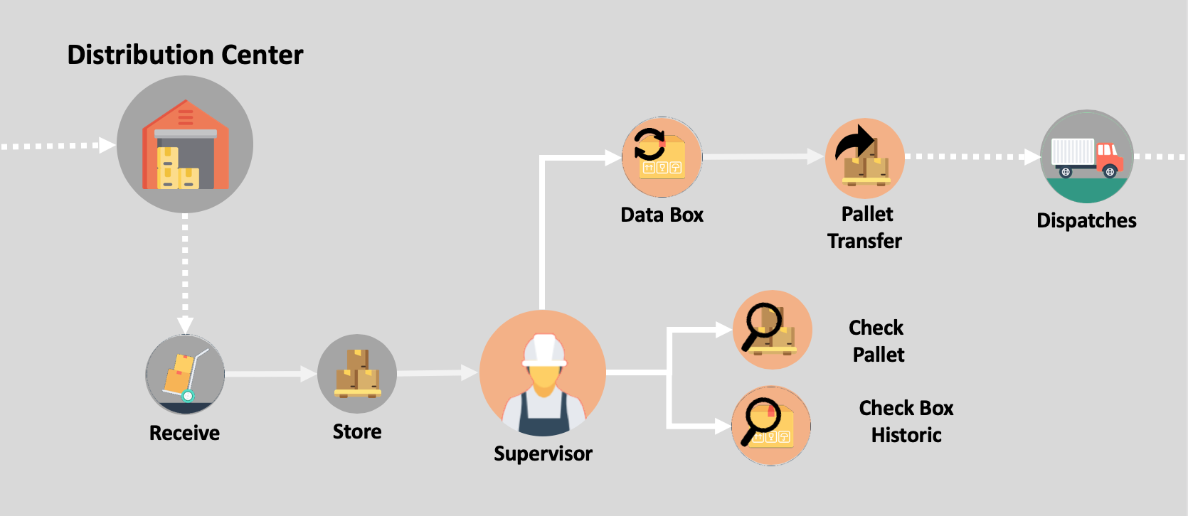 To avoid any issues with the product, the distribution center reviews the data sent by the factory. If there's any additional movement, such as pallet transfer, new information needs to be added to the package: