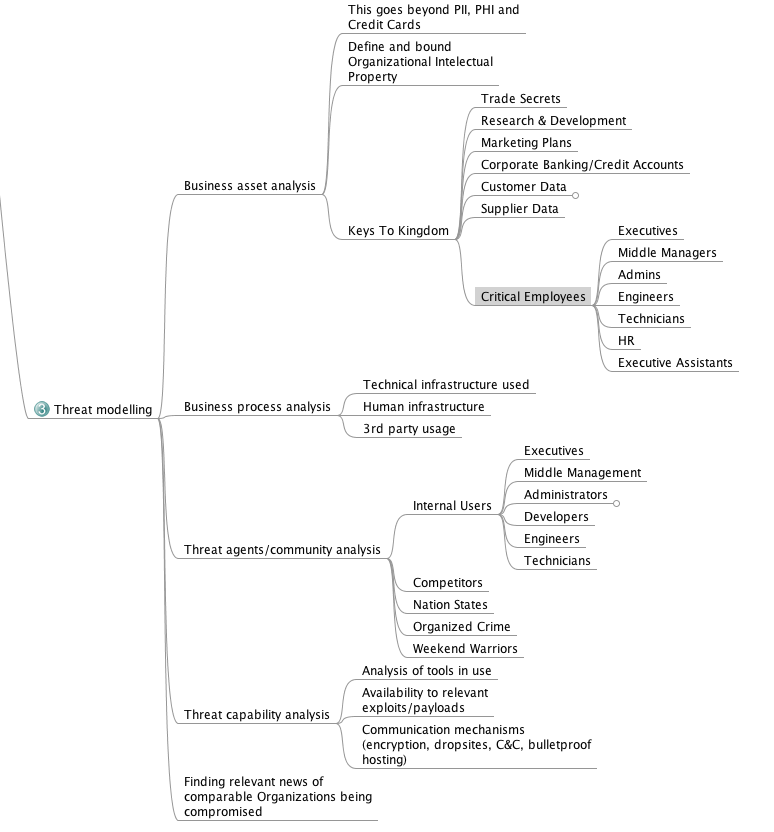 Threat modeling model depends on the amount of information gathered. Depending on that, the activity can be divided and then performed using automated tools, logical attacks, and so on. The following diagram illustrates an example of a mindmap of a threat model: