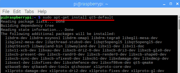 QT is a cross-platform application framework generally used for embedded graphical user interfaces. The latest version of QT is 5, so it is also referred to as QT5. To install the QT5 software inside our RPi, open the Terminal window and type in the following command: