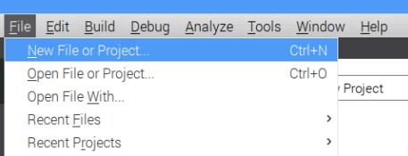 The QT5 project for turning the LEDs on and off is called LedOnOff. You can download this project from the Chapter05 folder of the GitHub repository. After downloading the LedOnOff project folder, open the LedOnOff.pro file to view the project inside the QT5 IDE.