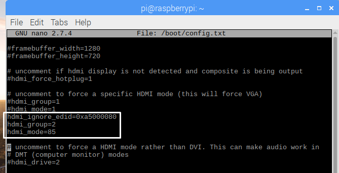 hdmi_ignore_edid=0xa5000080hdmi_group=2hdmi_mode=85