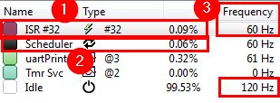 - The frequency of the ISR has been reduced to only 60 Hz (from 960 Hz). This is because, rather than creating an interrupt for every byte, there is only an interrupt generated at the end of the transfer of 16 bytes. The Idle task is being context-switched significantly less often as well. Although it seems ...