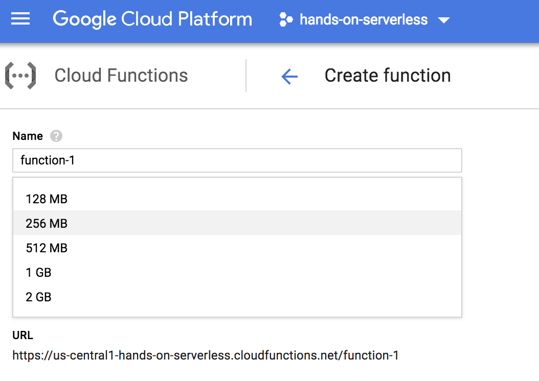 - Memory allocated: For each Google Cloud Function that you create, by default, 256 MB of memory is allocated. However, you can modify the memory allocated to Cloud Functions with these values: