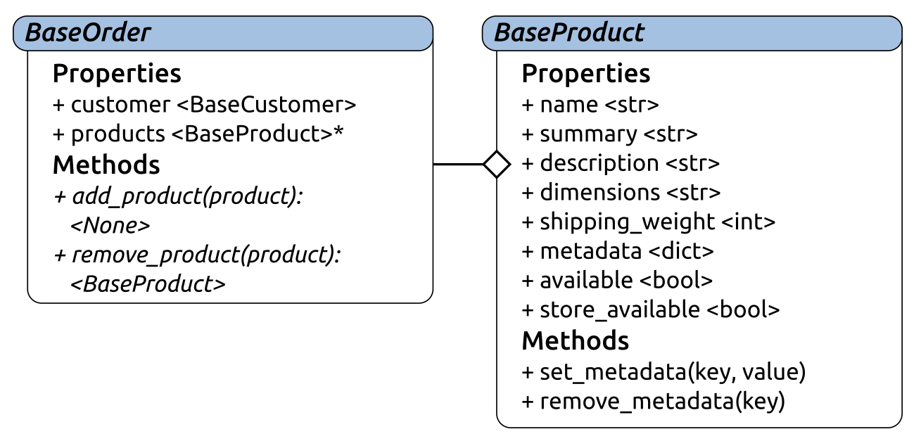 The BaseOrder class, shown here with BaseProduct, is a good example of that effect, at least at first glance: