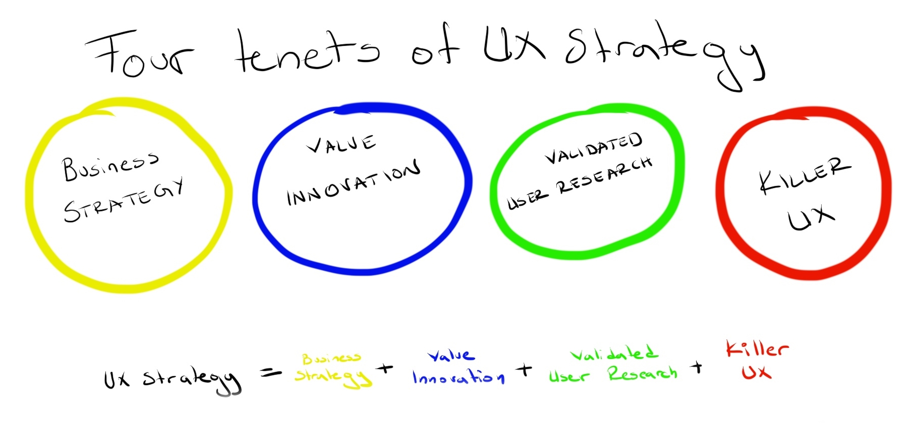 The best example of this topic is The four tenets of UX strategy, which was created by Jaime Levy in 2015: