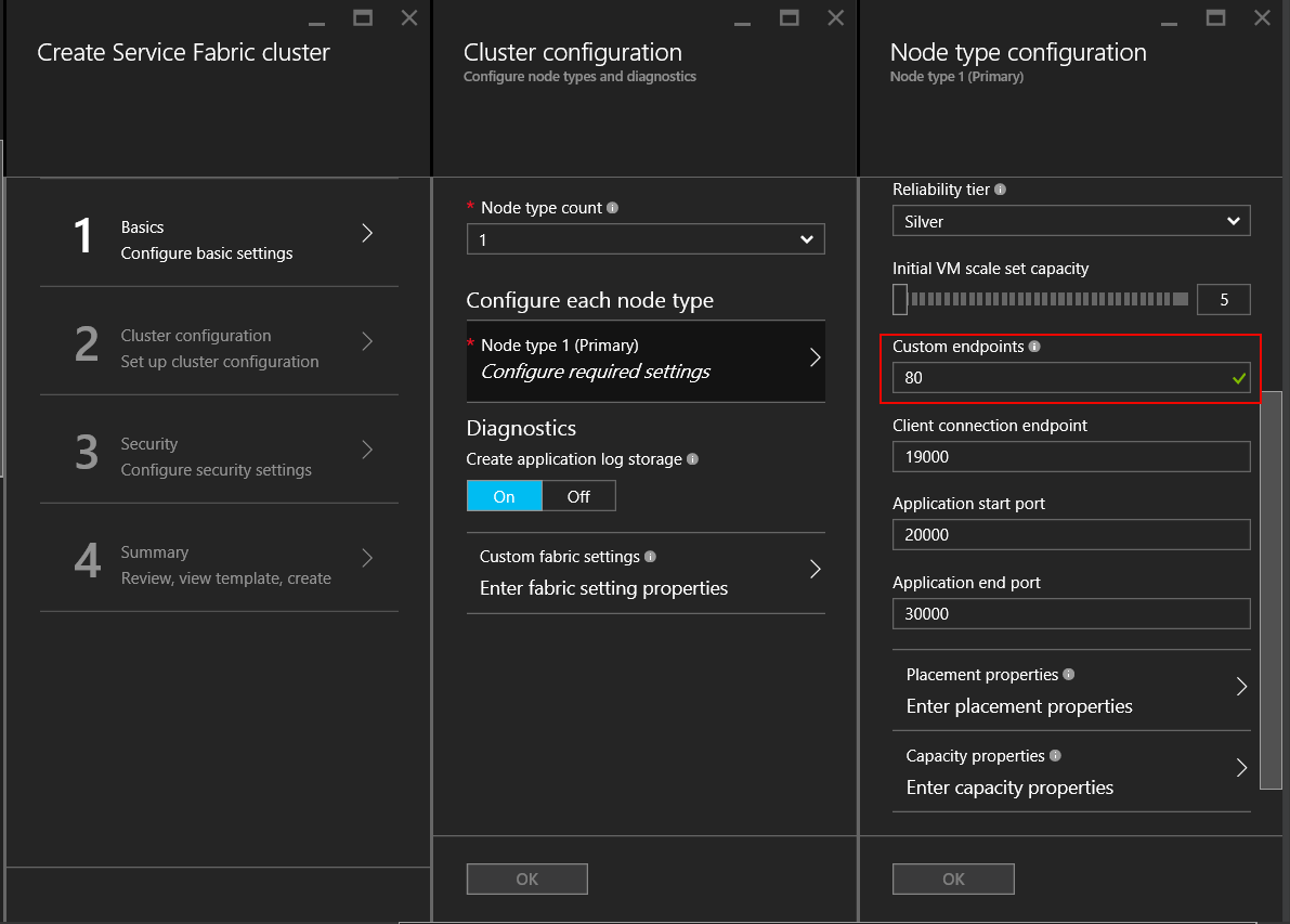 On the Service Fabric cluster, configure port 80 as a Custom endpoint. This can be easily done through the Azure Management Portal: