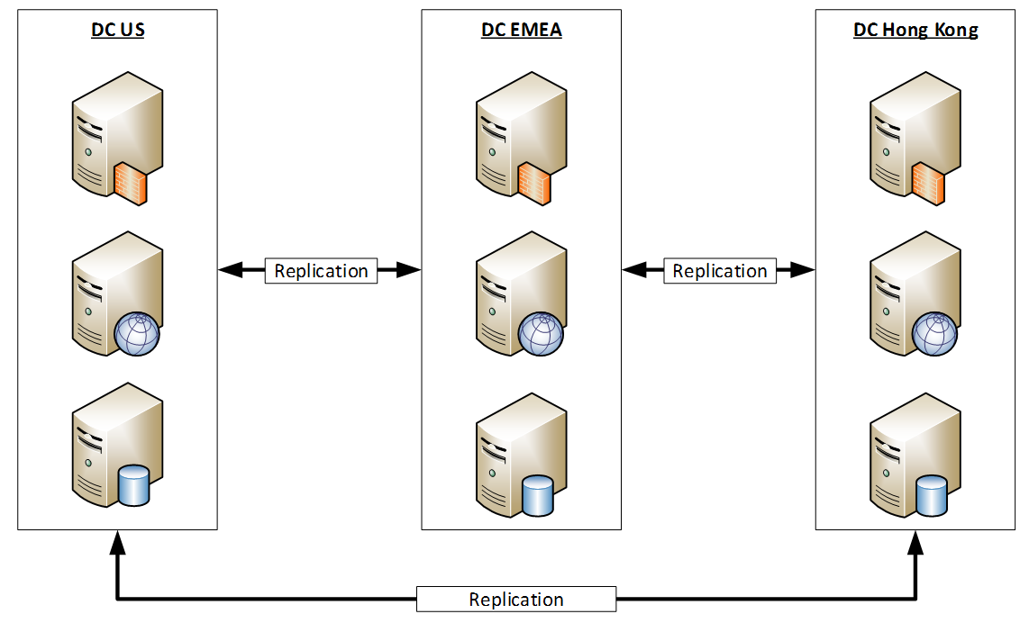 The following diagram shows the distribution of the servers: