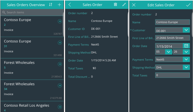 Let's have a glimpse of a sample mobile app built in no time and ready for usage by business. The following screenshot shows an app built on top of Dynamics 365 for Finance and Operations, Enterprise edition (AX) and its data entities: