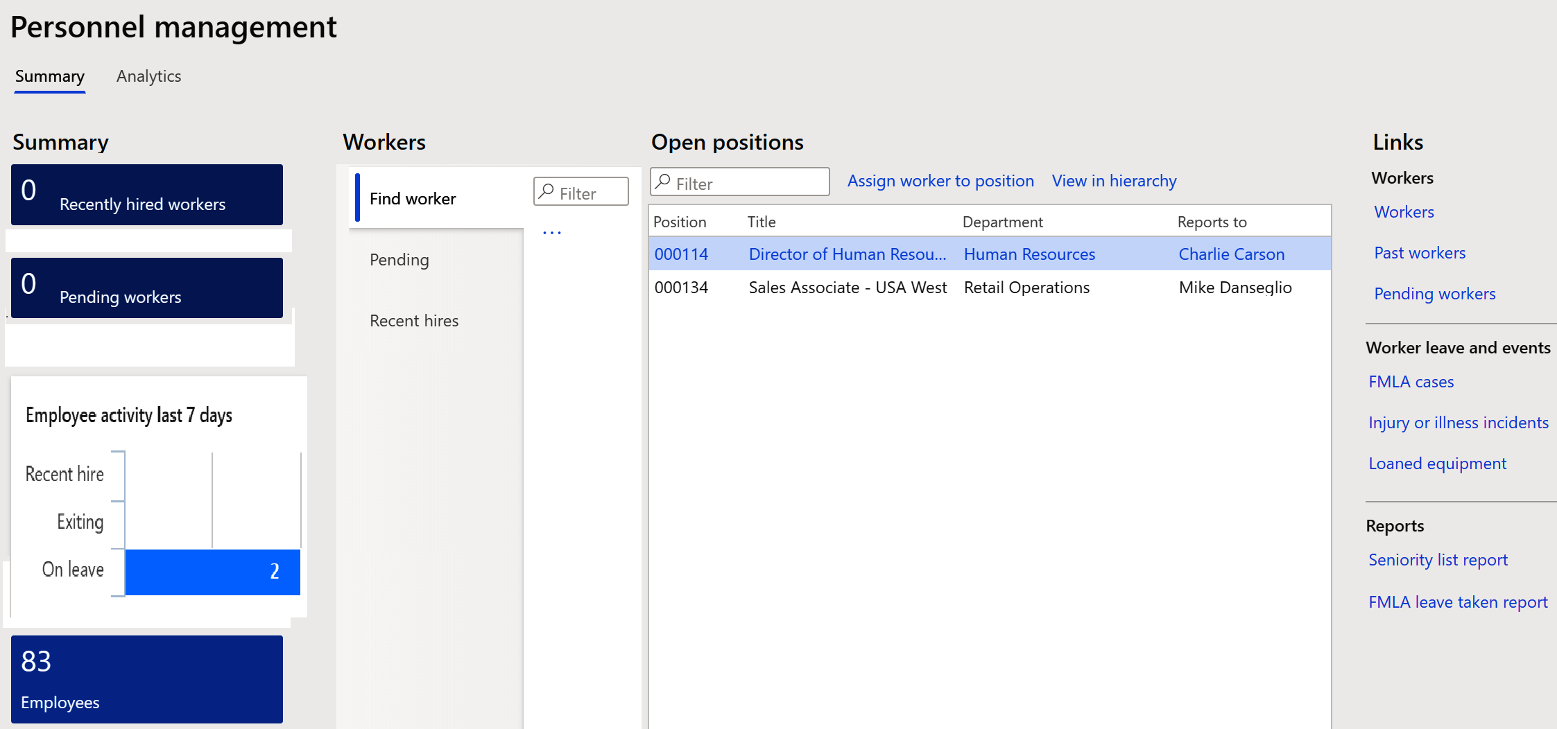 Workspaces are activity-oriented pages that are designed to increase the user's productivity. A workspace provides information that answers most of the targeted user's activity-related questions and allows the user to initiate more frequent tasks. As shown in the following screenshot, a workspace usually contains tiles (displaying counters or KPIs to answer a set of questions), a collection of relevant lists, and action buttons (to initiate activities), graphs, charts, or Power BI dashboards, and a set of links to pages that are important but not frequently used for this activity: