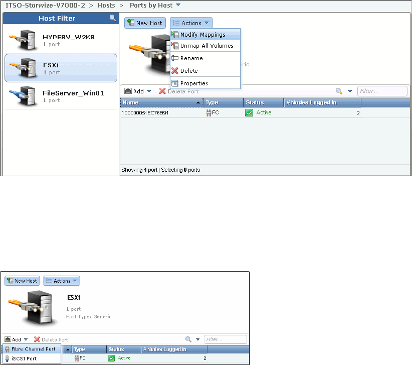 Figure 8-34 Ports by Host actions