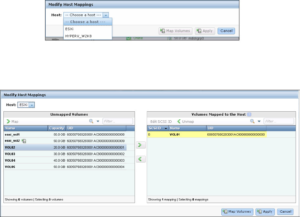 If you want to map a volume to a host, select Map to Host from the menu shown in