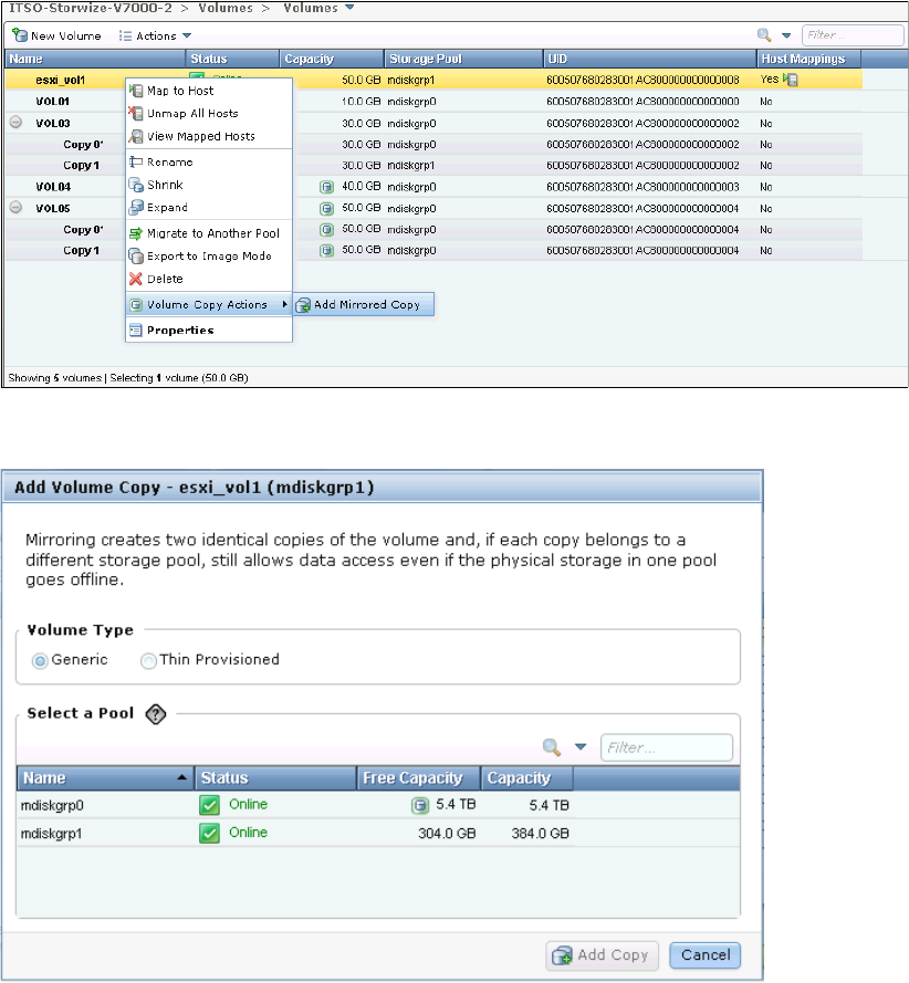 second copy, click Volume Copy Actions Add Mirrored Copy (Figure 8-92). Select the